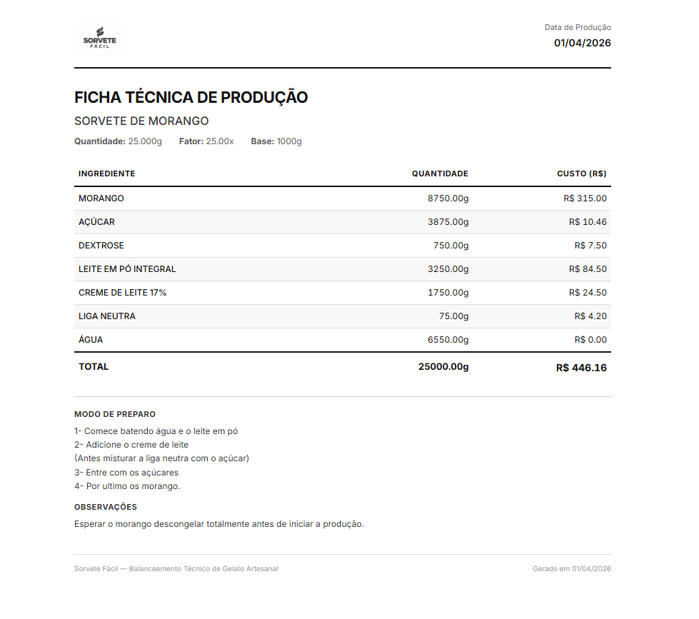 O sistema online prático que te ajuda a calcular os ingredientes para criar receitas de sorvete balanceadas, ajuda a ver o custo da sua receita e montar o cálculo da sua produção de maneira muito fácil e prática.